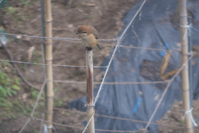 ここは、モズが大好きな竹支柱の上だが、この竹支柱、数日後には撤去の予定だ。
