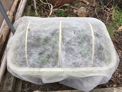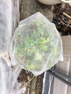 | もしかしたら、冬越しできるのだろうか? よく分からないが、こちらにも不織布をかけておいた。 |