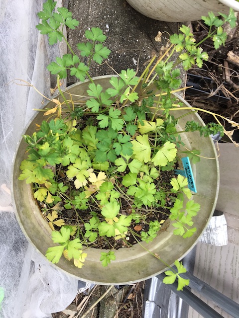 ところで、春に種まきしたイタリアンパセリの苗は、最近はもう収穫はしていないのだが、まだ枯れていない。