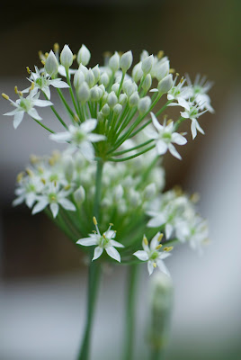 こんな雨の日に、ニラの白い花はとてもよく似合う。