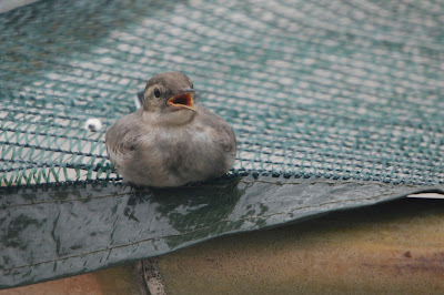 | わざわざ、歩きにくい遮光ネットの上を楽しそうに歩いていた。 |