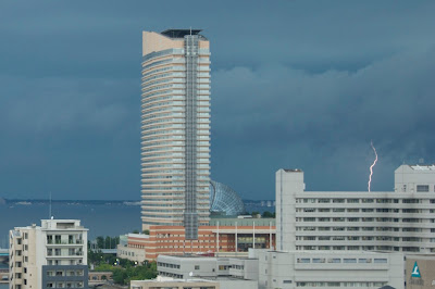 | 朝、北の空には厚い雲と稲光。今日は雨が降る? |