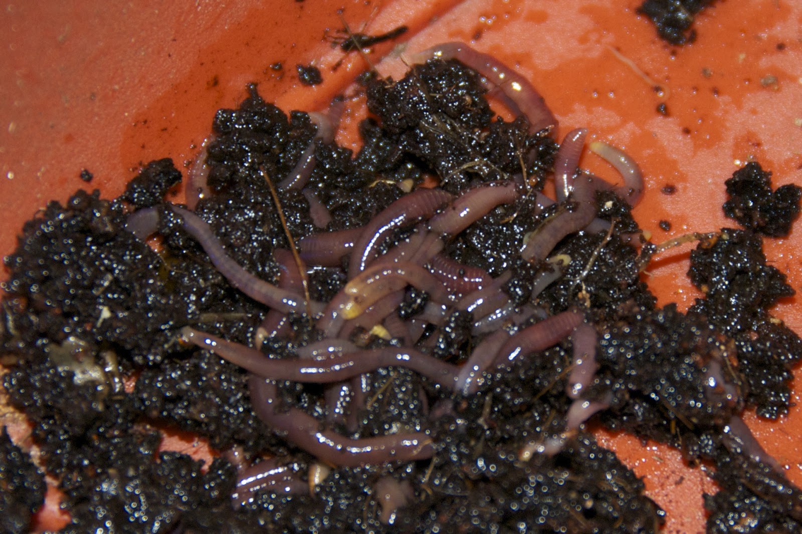 | ここに見えるミミズ君は赤ちゃんというよりもうほとんどが子供ミミズだ。 |