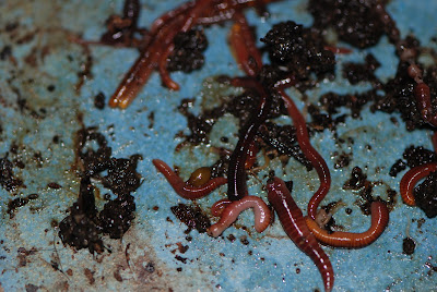 | 今回も卵10個くらいと、子供ミミズ3匹をこの小屋から外した。 赤ちゃんはいなかったのでここに見える子供ミミズは前回のチェック漏れだろう。 |