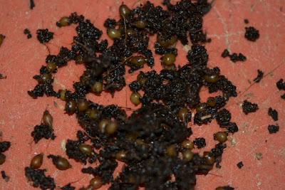 | 半数を割ったこの観察小屋のミミズ君たち。 極めて元気な状態だ。この状態がいつまでも続くことを期待しよう。 |