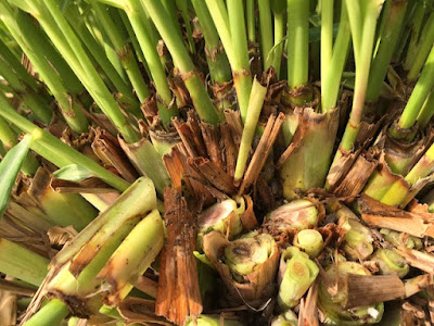 この時期、レモングラスの株元を見てみると、そこにはたくさんの切り株の中から新たな茎葉が3〜40cmくらいの高さに茂っていた。