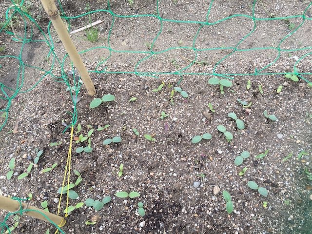 そんなこともあろうかと、2週間程前。畝の方にも直接種を蒔いていた。
