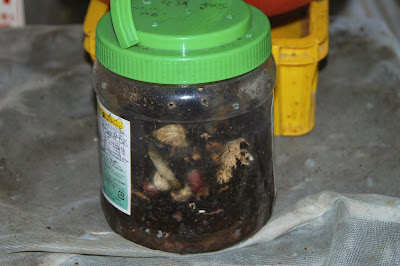 | ウェットな内容をチェックしてみて分かった。 先月餌として入れた解凍後のキクイモがベチャベチャ状態になっていた。 やはり解凍後の餌は少なめに与える必要がありそうだ。 食べ残しが多かったがサツマイモの皮などのお陰で環境が何とか保てたのだろう。 |