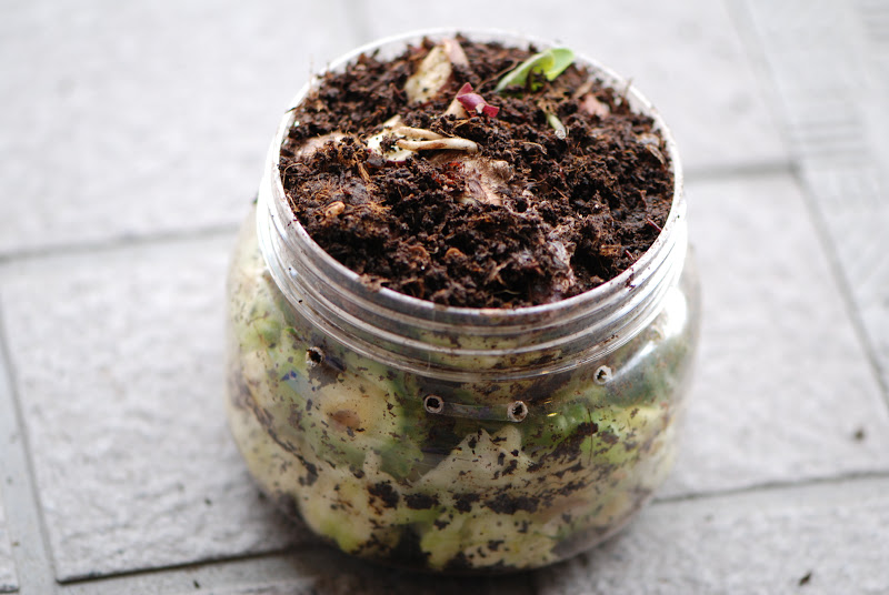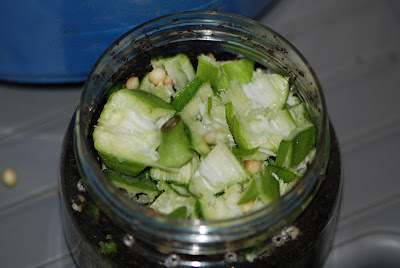 | 一旦、小さい容器にみみず君と一緒にゴーヤをいっぱい詰め込んだ |