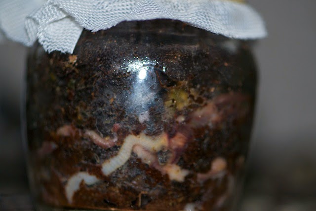さて、先月まで8匹が元気にしていた小さな瓶の中でのミミズ君。