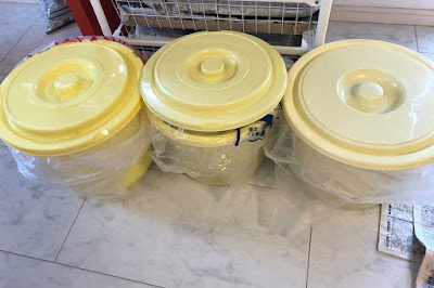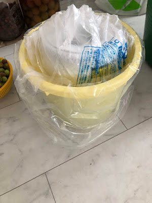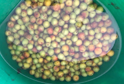 | 去年の小梅のあく抜き風景。 去年の小梅は大量、かつカメムシ被害が少なかった。 |