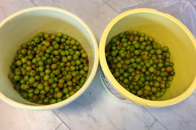 収穫した小梅は、大梅の時と同じように風呂の浴槽で洗い、アク抜きをした。