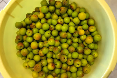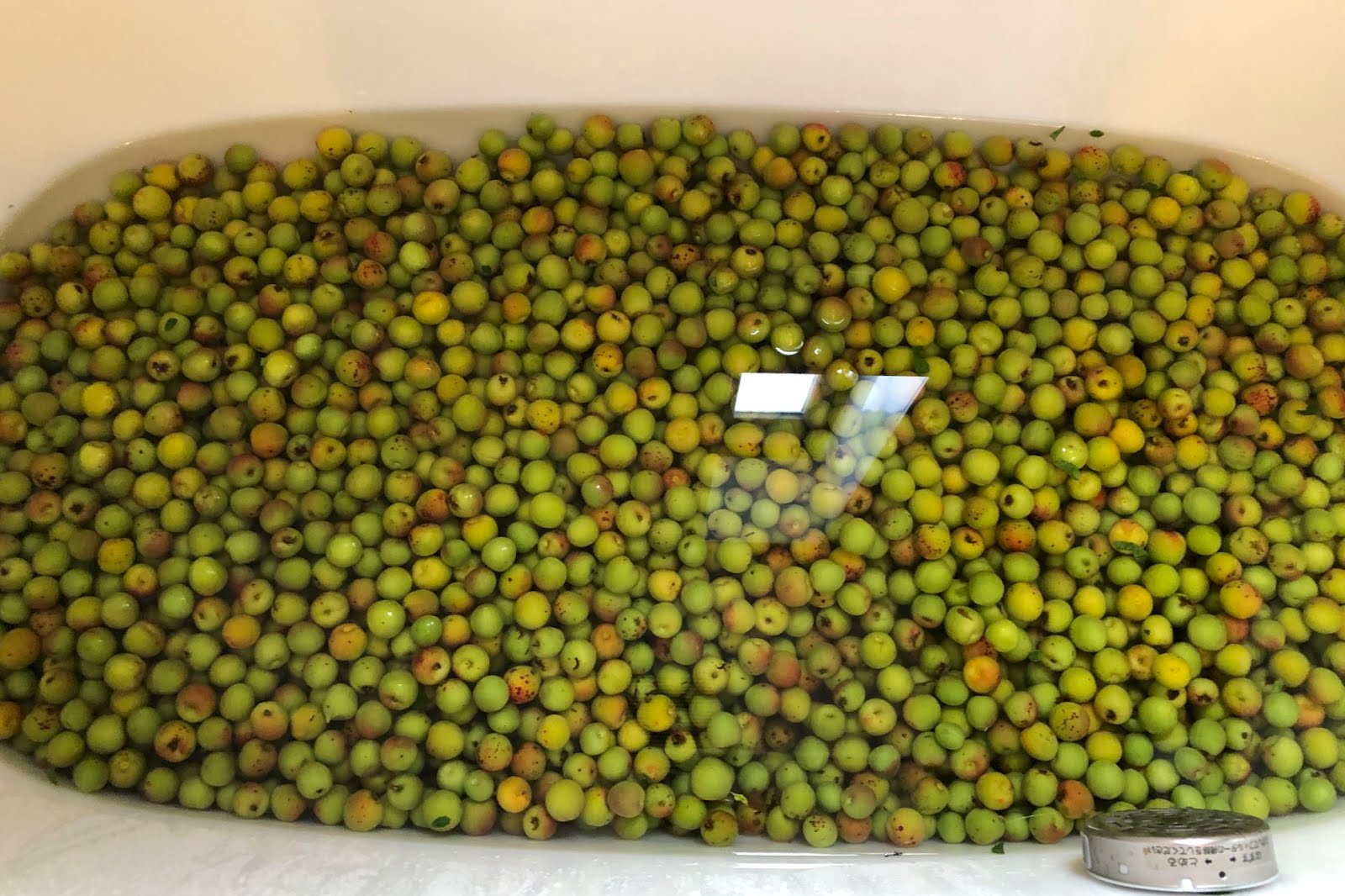 収穫した小梅は、大梅の時と同じように風呂の浴槽で洗い、アク抜きをした。