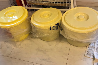 仕方なく、大樽の内容を、出来るだけ塩、砂糖、焼酎が均等に入るよう、上の方から手で一杯づつ掬って、2個の中樽に交互に入れていった。