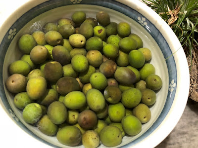 小さなオリーブとは言え、私にとっては念願の初収穫のオリーブ。