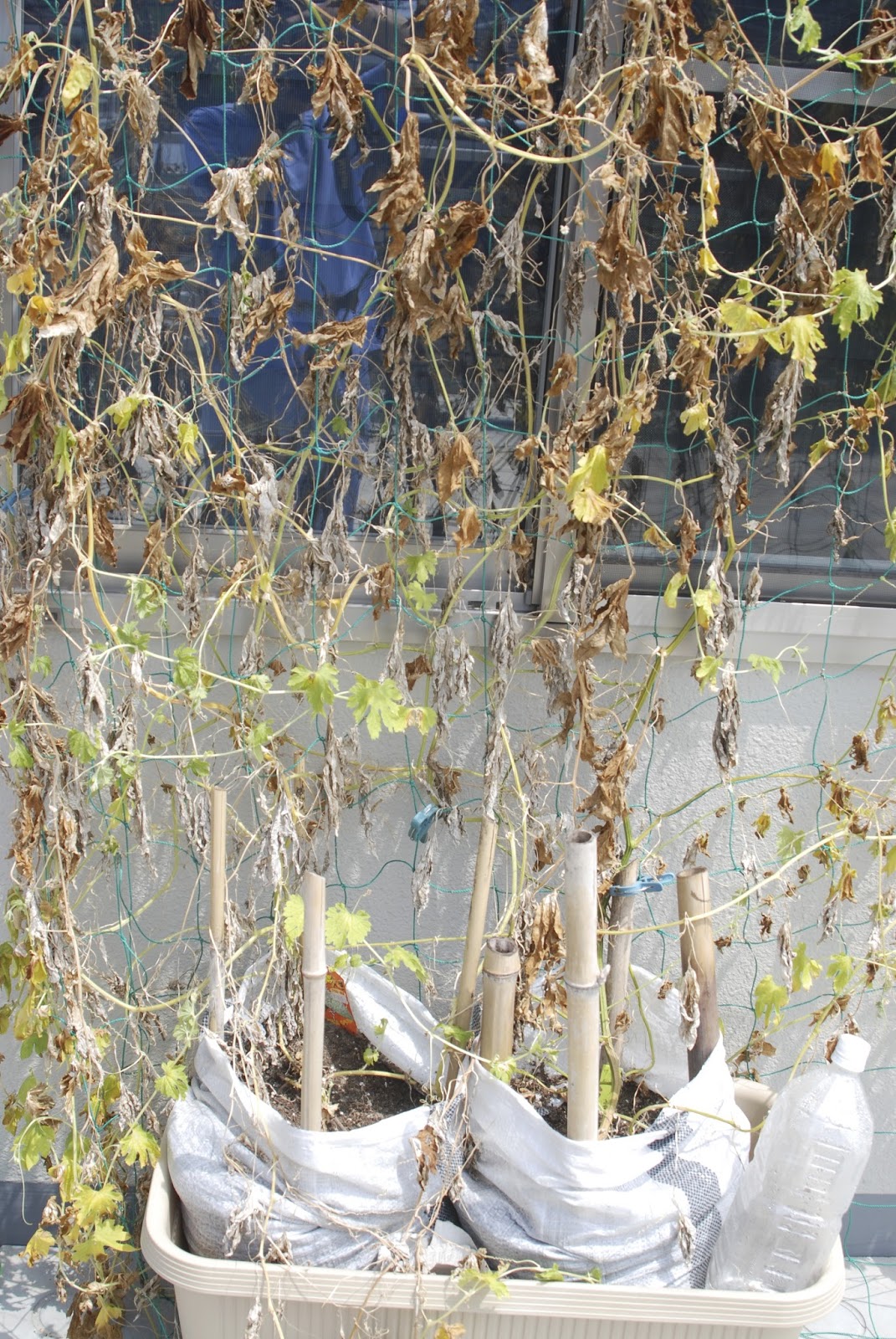 どのゴーヤも葉はほとんど枯れているが、太い茎はまだ生きているように見える。