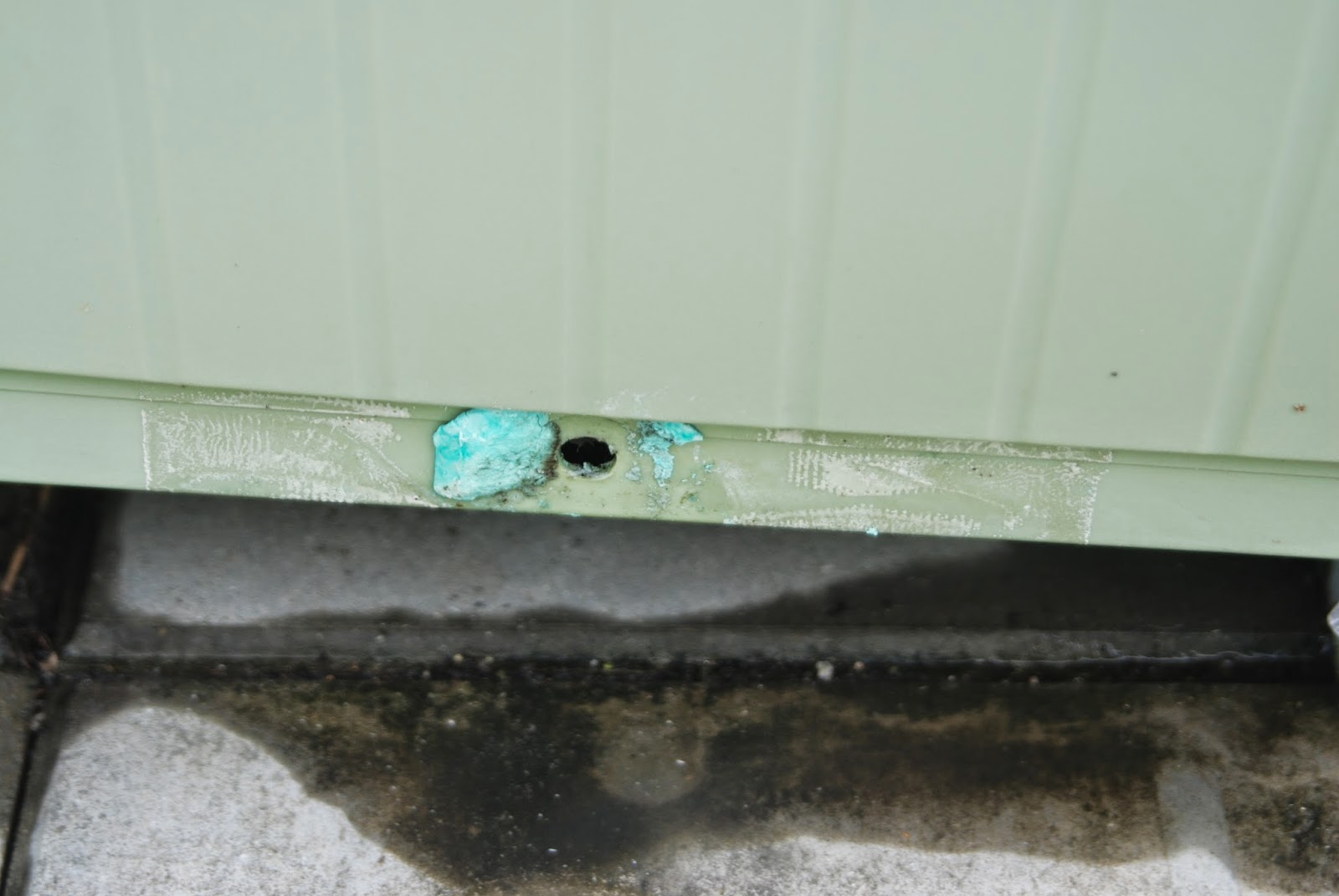 | この写真では分かりにくいが、土嚢袋の外側には水は溜まっていない。 |