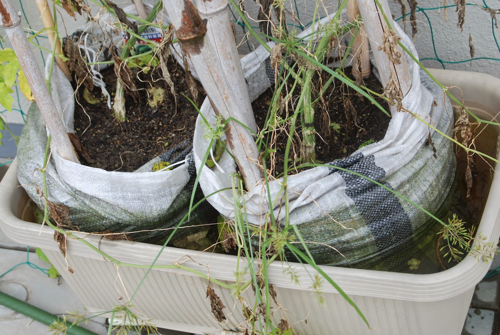 こちらのプランターではまだゴーヤは成っているが、ボウフラ対策の一環として腰水法を取りやめた。