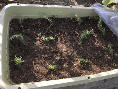 さて、昨年12月初めにプランターにローズマリーとラベンダーを挿し芽して、防寒用にビニールカバーをかけていた。