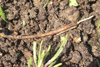 | 挿し芽がうまくいっているところと枯れたところ(右)があった。 枯れたところは、土がカラカラになっていた。 |