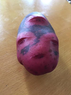 今日は、上のタイプの種芋と、もっとシワシワ状態の、下の写真の様な日陰で新聞紙だけを被せて保存しておいた芋を種芋として植えた所の取り残した苗の最終収穫だった。