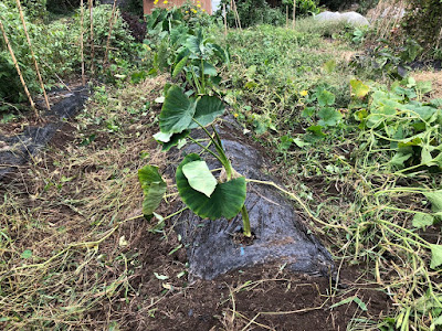 それでも、今年の初収穫をそろそろ食べたかったので、一番背が高くなっていた里芋を掘り起こすことにした。