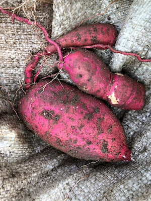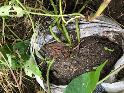 そして、今日掘り起こした株は、小さな芋を親芋に付けたまま、もう一度植え直しをしておいた。