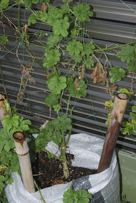 | 近日中にこの苗は撤去しよう。折角高さのある蔓用の網を設置していた。 この時期から、何かこの網を再利用出来るものは植えれるだろうか? |