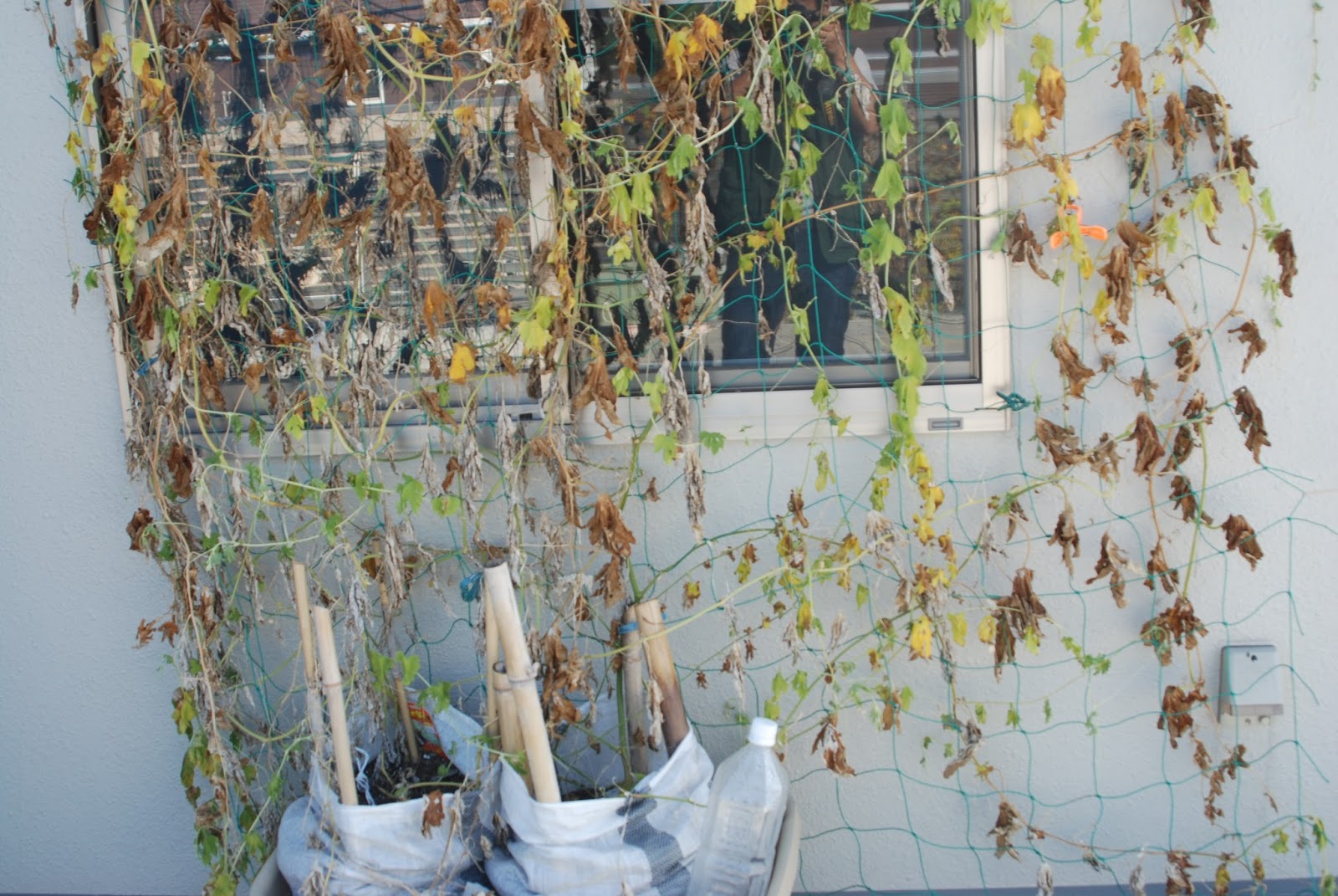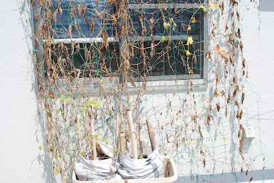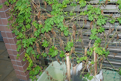 一方、屋上菜園の主役だったゴーヤは、8月中旬の旅行時の干ばつでこんな感じに枯れてしまっていた。