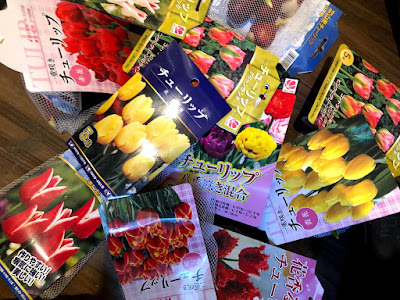 | 今年も福袋にはチューリップを中心にたくさんの球根が入っていた。 福袋は、昨年末に店に電話してこの時期まで取り置きしてもらっていた。 |