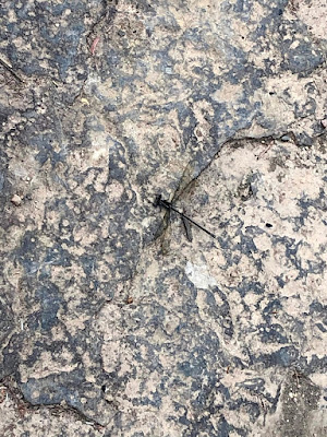 私も目を凝らして岩の表面に化石を探してみたのだが、トンボの化石のように見えたのは生きているトンボだった。
