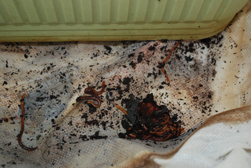 一方、収納袋の内側を見てみると、先程のミミズとは別に3〜40匹のみみず君たちが横コンの外を旅していた。これはよく見られる光景だ。