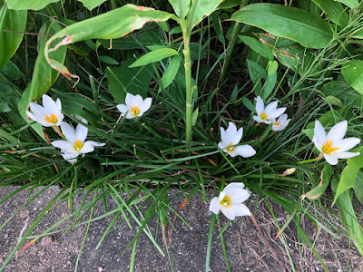 そんな戦いが今にも始まりそうなイチジクの木の下ではゼフィランサスが平和に元気な花を咲かせている。