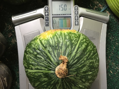そして、今日収穫した4個のカボチャは、今年2回目の収穫にしては上等で、大きなもの2個が1.5kgに達していた。