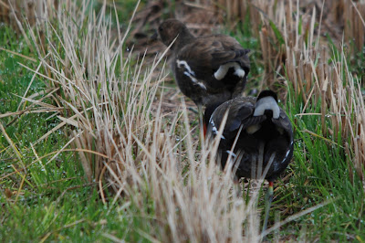 鳩くらいの大きさの夫婦仲のよい鳥だ。かもの仲間だろうか?