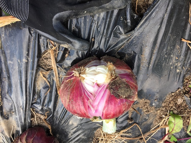 で、我が家の赤玉ねぎの収穫が遅れ気味?になった。