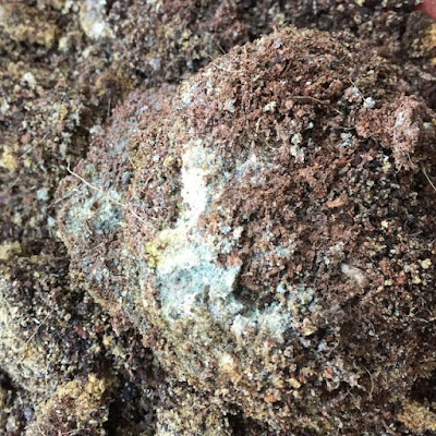 | 米ぬかとともに。わずかに加えていた元々のミミズ堆肥に種が入っていたのだろう。 さあ、中の様子はどうだろう? |