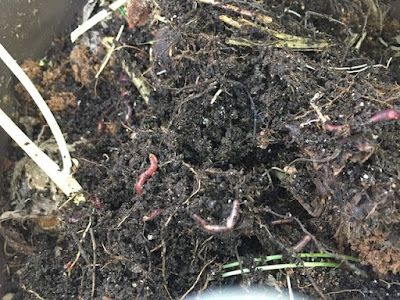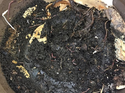 | 中段の内部を見てみると、まだ芋類や野菜の繊維などか少し残っていた。 ミミズくんもそれなりの数が居た感じだ。 |