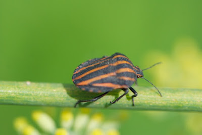 こちらは、セリ科の植物でよく見かけるダンディーなカメムシ。