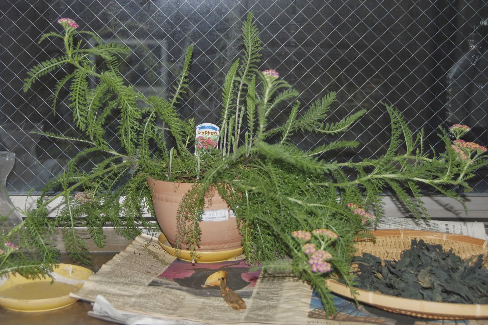 一方。こちらのハーブは“レッドヤロウ”。室内の窓辺で育てている。