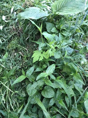 | 昨年秋に片付けたゴーヤやツルムラサキを山積みにしていた場所だ。 ここには自然発生苗がいっぱいだが、ゴーヤの1本のみ残そう。 |