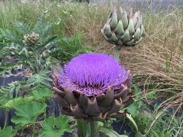 先日、モグラに根元をかじられ、倒れかけていたアーティチョーク。