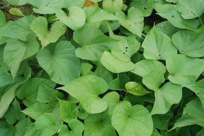さて、この時期になると、この4種類のサツマイモ、どれも元気を出して蔓を伸ばし、地面が見えなくなっている。