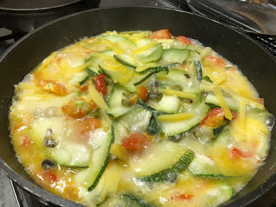 この巨大な丸型ズッキーニ、フライパンで煮込み料理になったのだが、とても美味しかった。