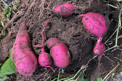 今日まずひっくり返した土嚢袋は、底から芋が顔を出していた。