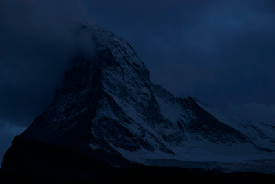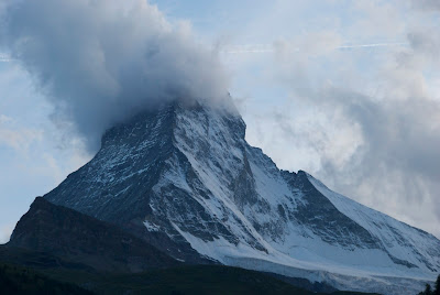 マッターホルンの頂上付近にはずっと雲がかかり、夜までその雲は取れずじまいだった。