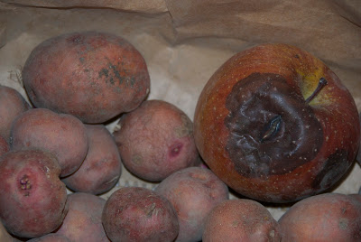 | こちらがアンデス赤、リンゴは腐れているが芋は腐れていなかった。 |