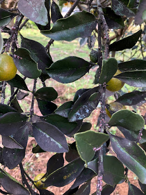 ところで、今日収穫したキンカンの木はスス病にかなりやられて、きれいな実が少ない。