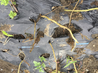 | こちらがデストロイヤーの本命の畝。 台風被害は少しはあったのだが、ほとんどの苗が持ちこたえた。 |