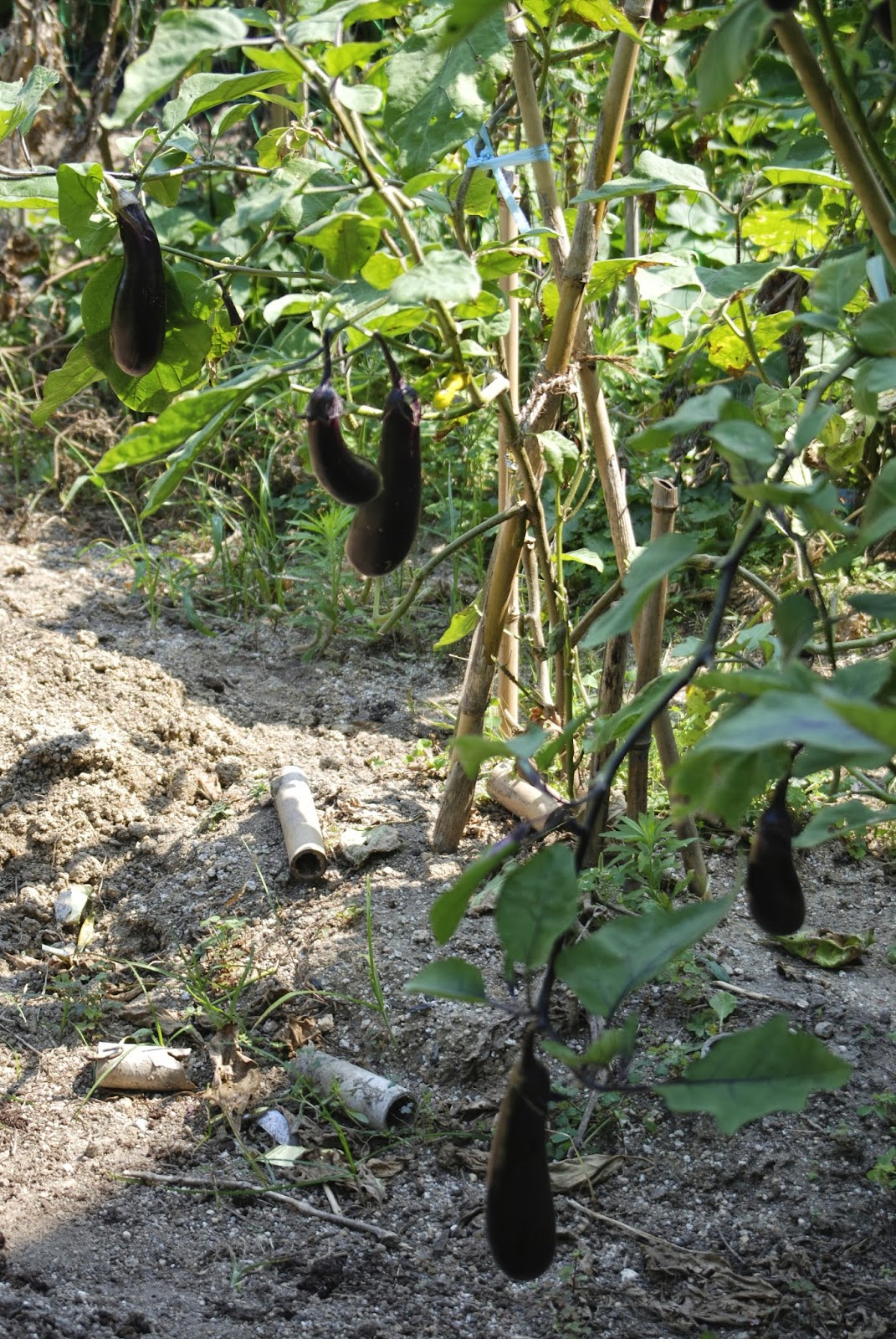 | こちらは成りは小さいが長ナス。 |